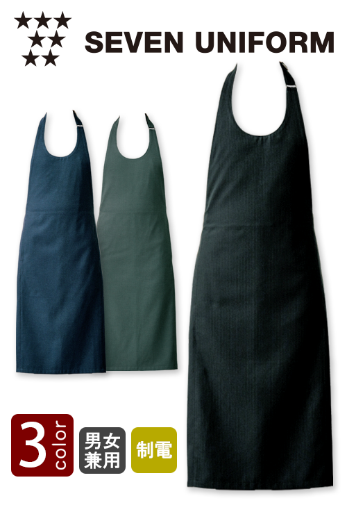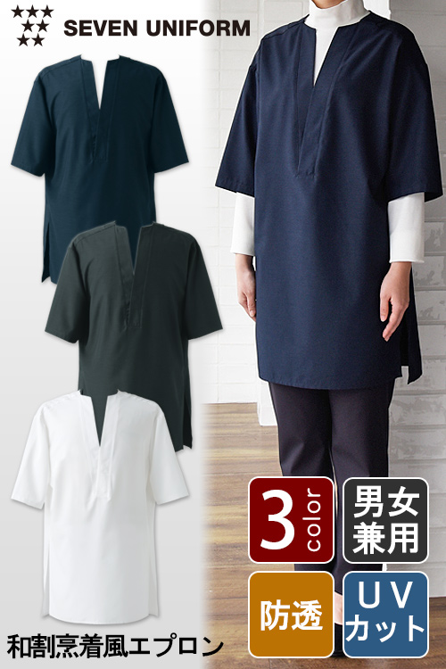【飲食店販売店制服】時短かぶるだけエプロン 2秒で着用 【15色】兼用 防脱色・非フッ素撥水