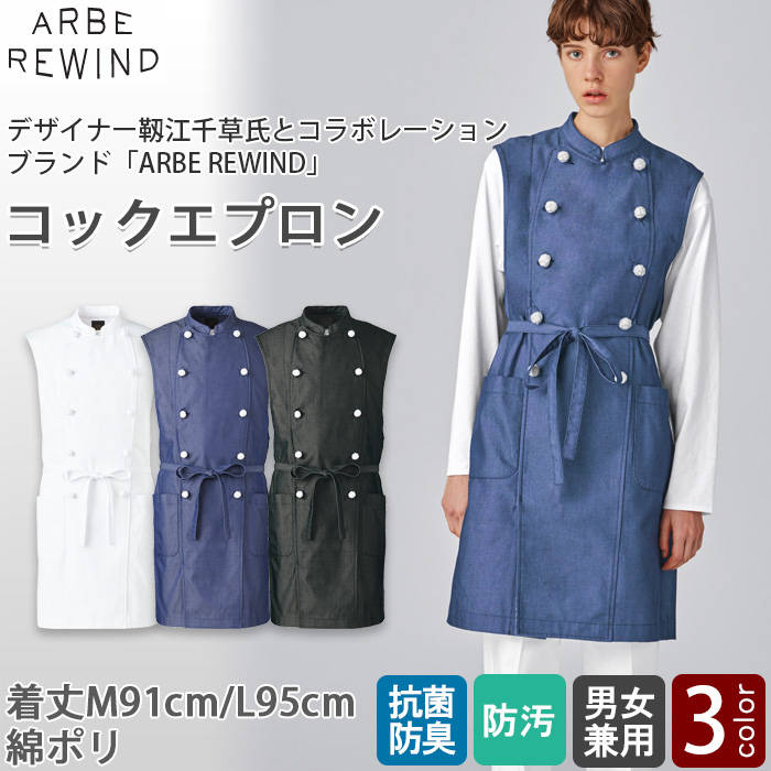 【飲食店販売店制服】 ARBE REWINDコックエプロン【3色】兼用 コックコートとエプロンを融合
