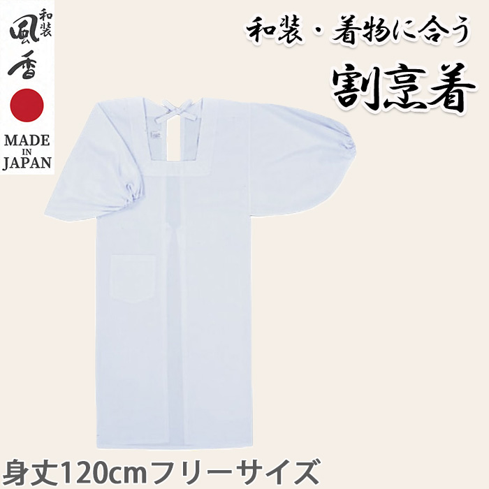 【和飲食店販売店制服】割烹着かっぽうぎ(白) 和装着物に合う身丈120cm