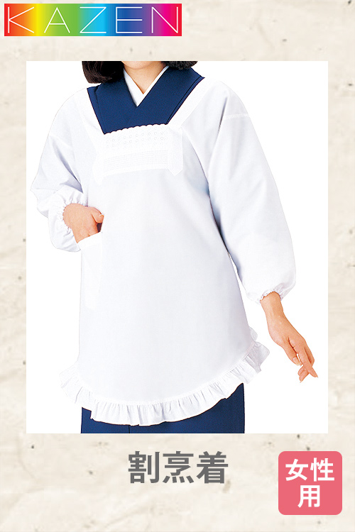 【飲食店販売店制服】割烹着 袖口ゴム・ポケット付かっぽう着M/L【女性用】