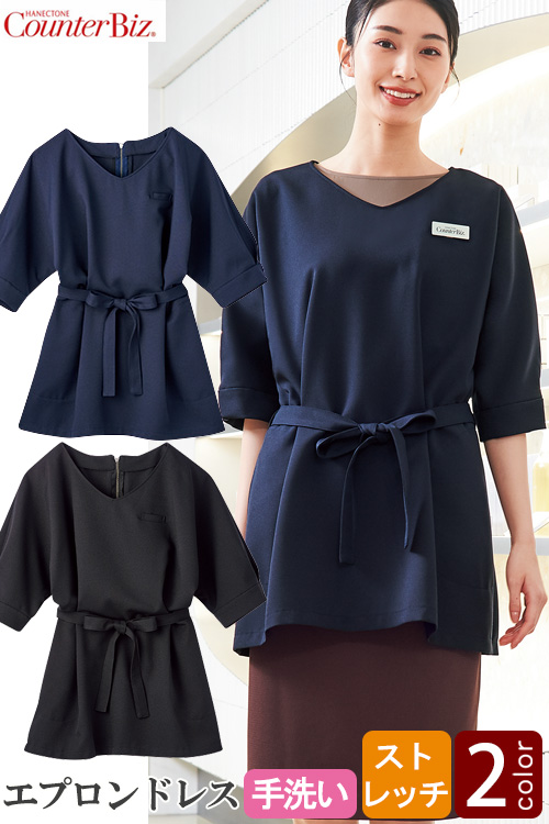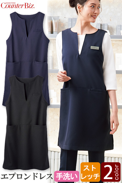 【サロン・販売店制服】エプロンドレス チュニックワンピ2色 すっきり見えるベストタイプ