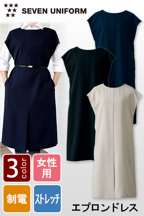 飲食店販売店制服 ワンピースのようでエレガントなエプロンドレス【3色】女性用