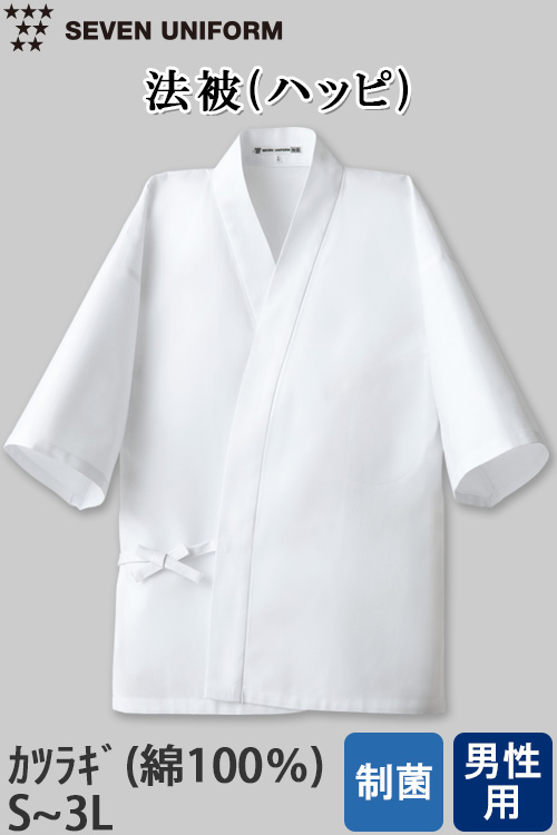 【飲食店販売店制服】ボタン留ハッピコート白【男性用】ポリ65%綿35%タッサー