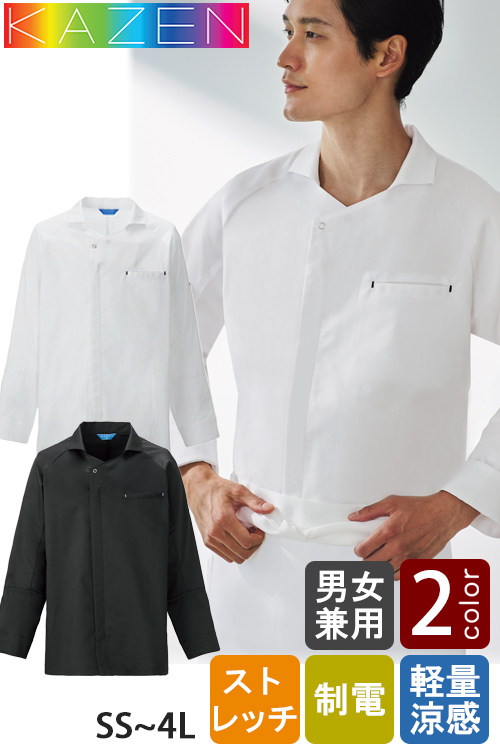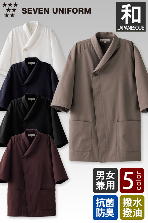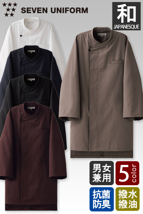 【飲食店販売店制服】抗菌防臭、撥油撥水で高機能 3色展開白衣コート【男女兼用】