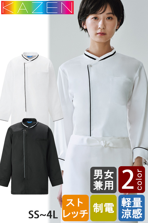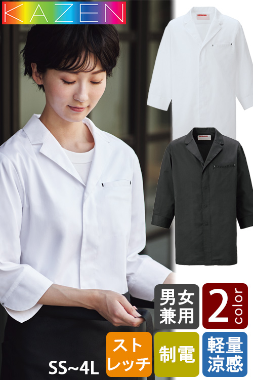 飲食店販売店制服 調理コート(七分袖) 【男女兼用】襟付き調理コート