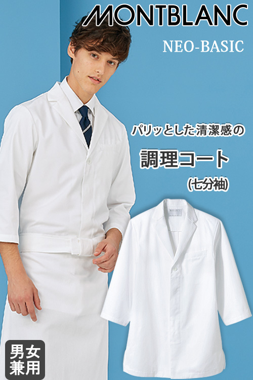 【男性用】衿付き・七分袖 調理白衣 綿ポリ(ポプリン) S〜4L