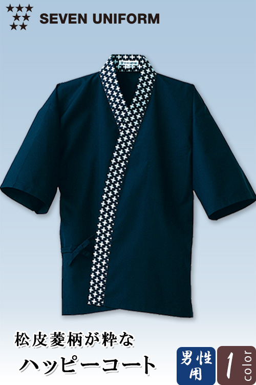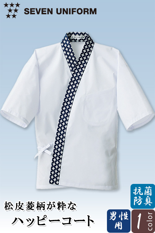【飲食店販売店制服】松皮菱柄ハッピコート白【女性用】抗菌防臭