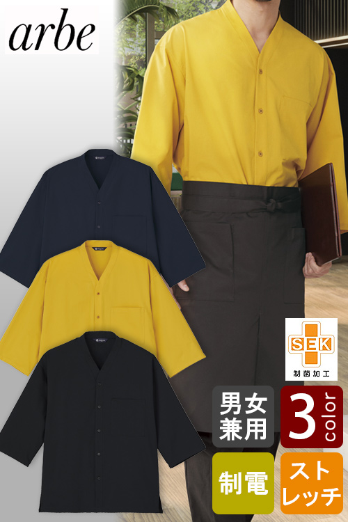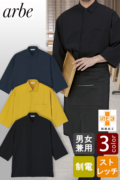 【飲食店販売店制服】4方向ストレッチ 和洋OK 七分袖シャツ【3色】兼用