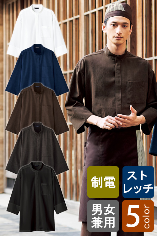【飲食店販売店制服】和モダンなニュアンスカラー エリなし5分袖上衣【兼用】