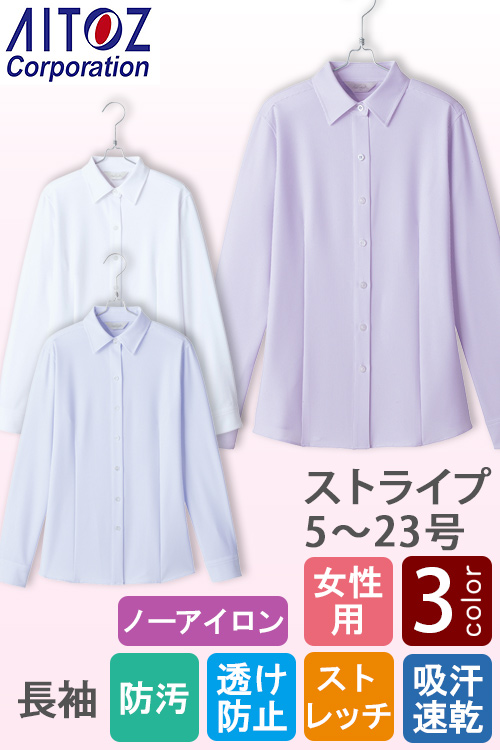 【ホテル受付飲食店制服】ストライプ長袖ブラウス【女性用】5〜23号 ノーアイロン高機能