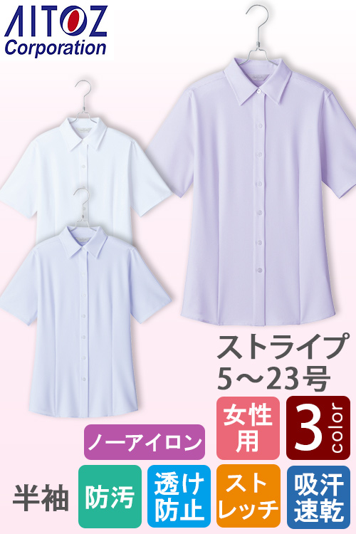 【ホテル受付飲食店制服】ストライプ半袖ブラウス【女性用】5〜23号 ノーアイロン高機能