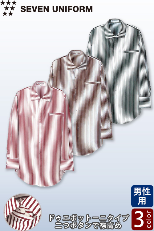 飲食店販売店制服 シャツ【男性用】3色 2つボタンの爽やかなストライプシャツ