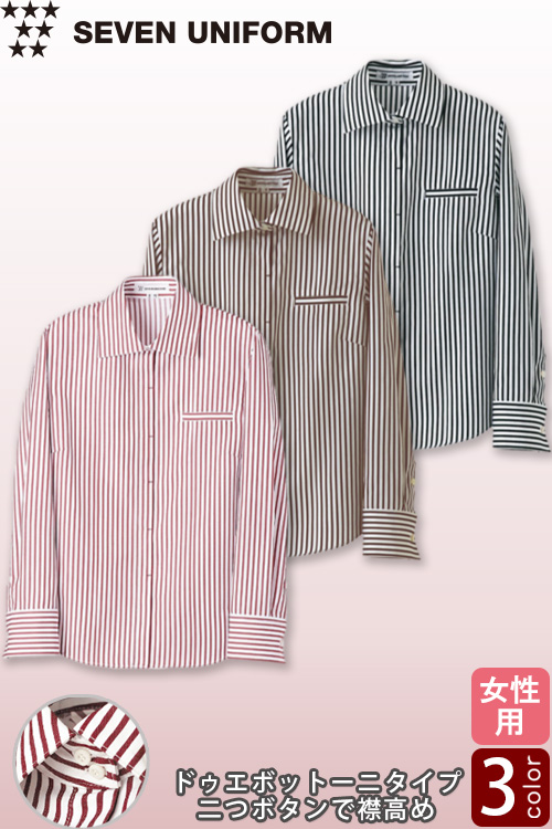 飲食店販売店制服 シャツ【女性用】3色 2つボタンの爽やかなストライプシャツ