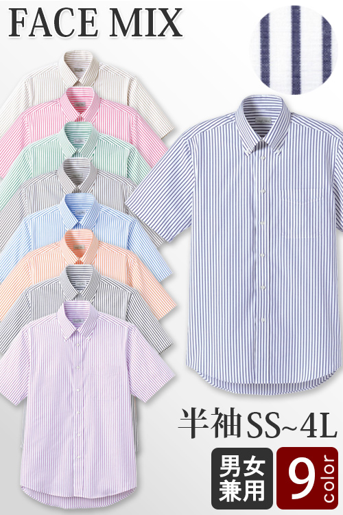 【飲食店販売店制服】お手頃価格で人気!ボタンダウン半袖ストライプシャツ【男女兼用】