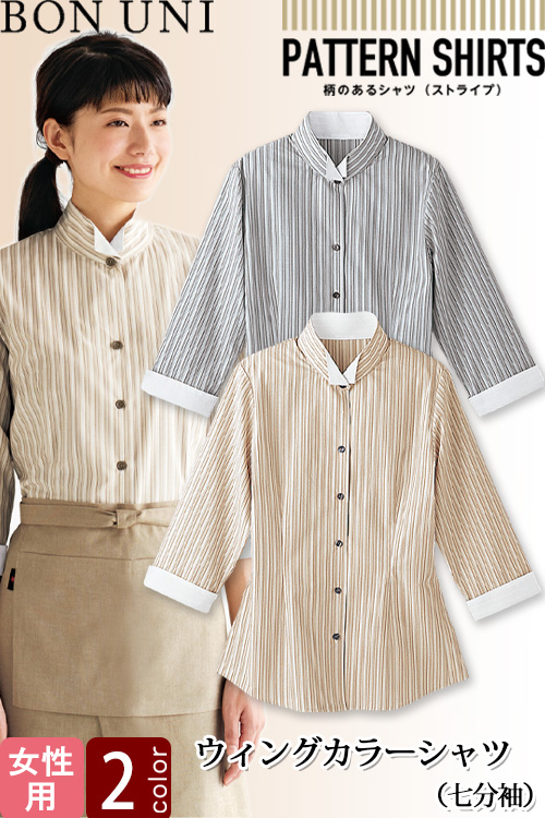 飲食店販売店制服 ウィングカラーシャツ 七分袖【女性用】2色 スタイリッシュな印象のシャツ