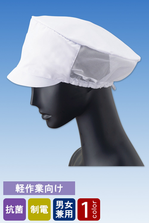 食品工場向け衛生服 軽作業向け 抗菌・制電加工でお求めやすい メッシュ帽子[兼用]