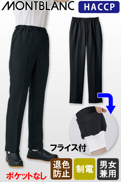 【飲食店販売店制服】塩素消毒&工業洗濯OK ポケットなし裾フライス付パンツ【兼用】