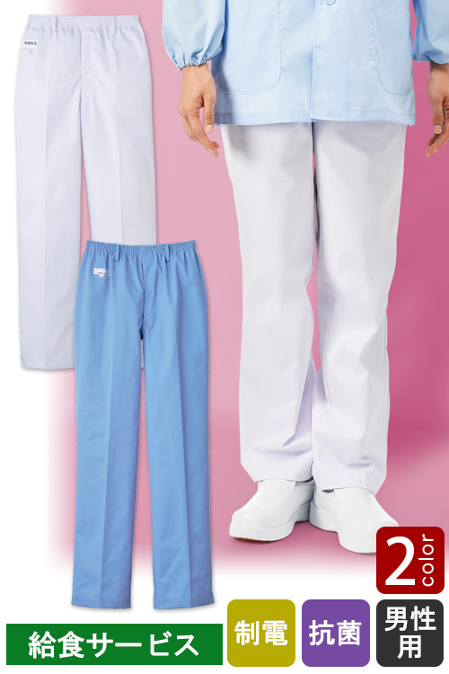 食品工場・衛生服 給食サービスの現場に ウエストゴム入りストレート パンツ2色[男性用]