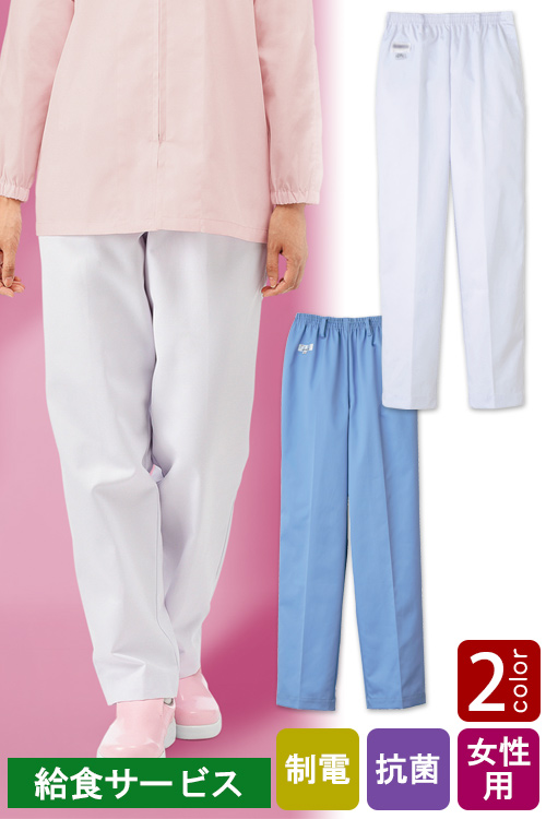 食品工場・衛生服 給食サービスの現場に ウエストゴム入りストレート パンツ2色[女性用]