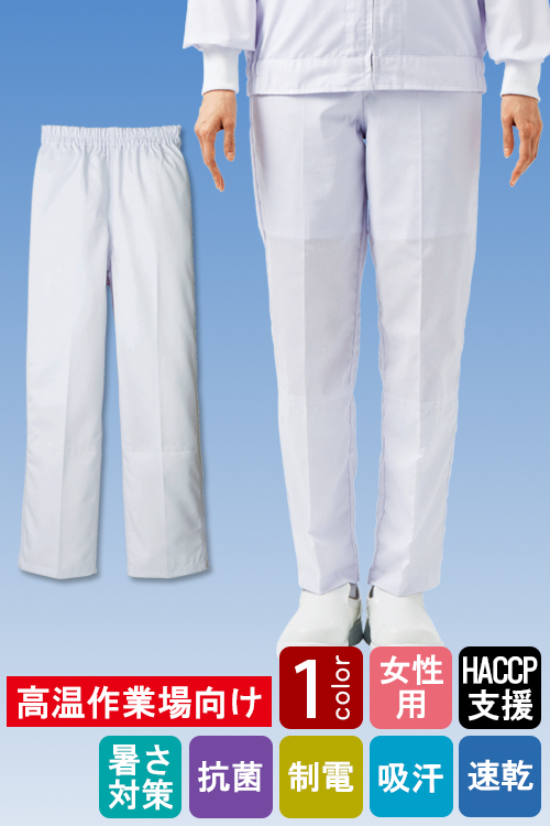 食品工場向け衛生服 高温作業向け 冷感素材使用で爽やかな着用感! パンツ1色[女性用]