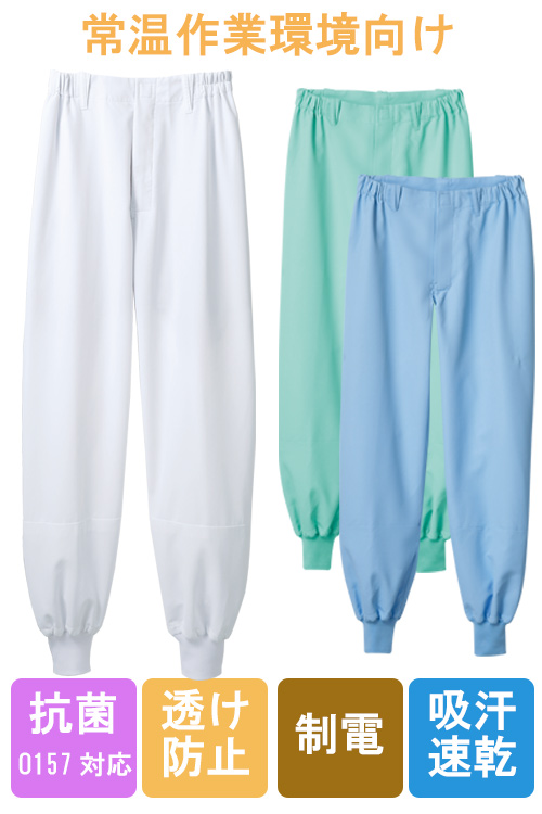 【食品工場食品販売店制服】O157HACCP支援パンツ3色男女兼用 常温作業 制電、吸汗速乾