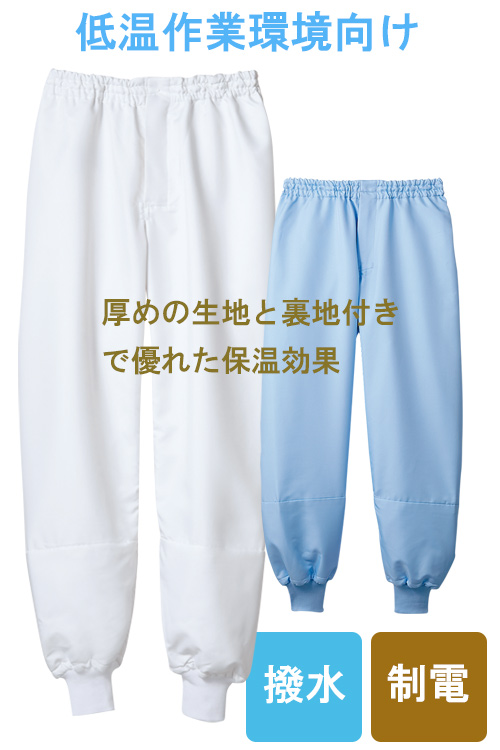 【食品工場制服衛生服】常温・高温作業向け 薄手高機能素材 パンツ5色【男女兼用】