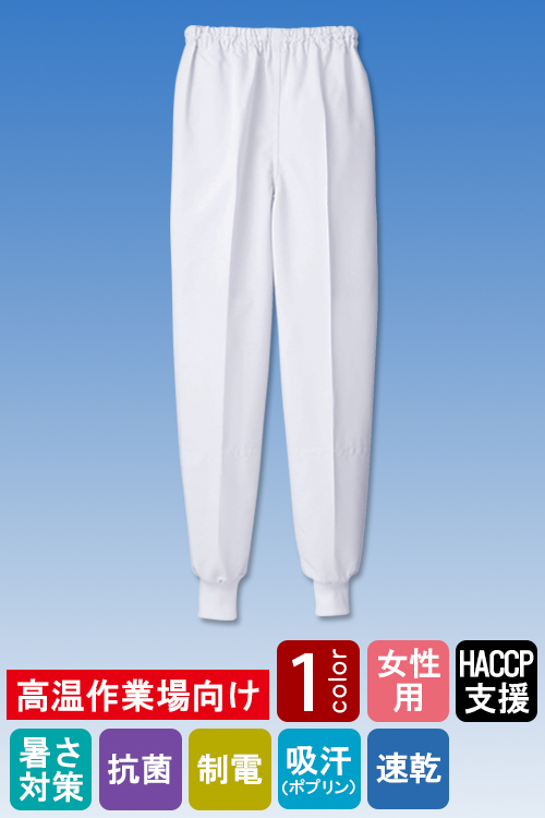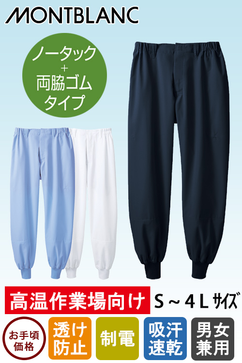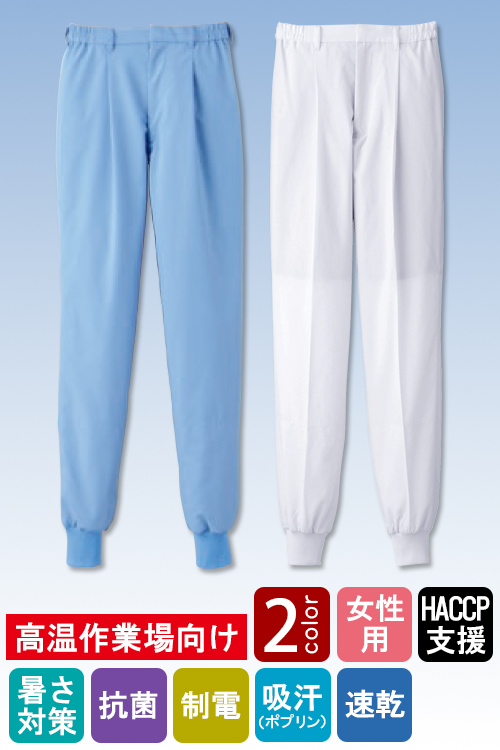【食品工場制服衛生服】高温作業向け パンツ ノータック・両脇ゴム【兼用】リーズナブル爽やか素材