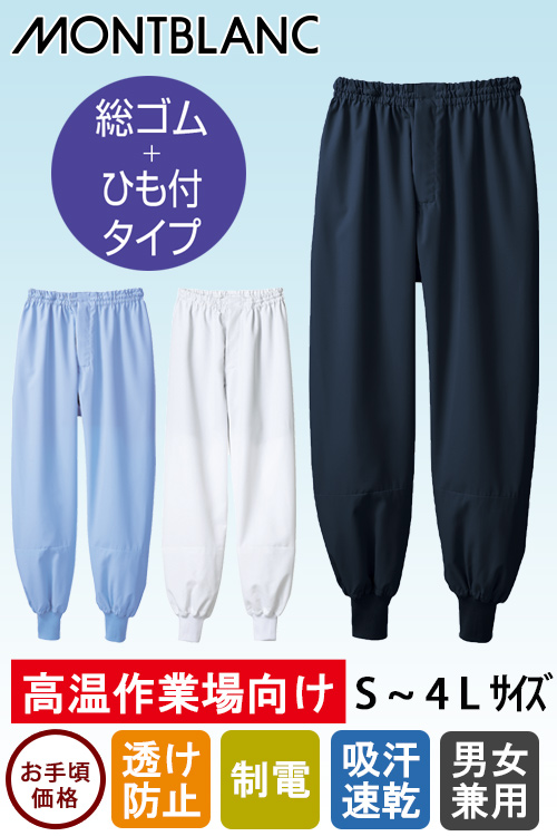 【食品工場制服衛生服】高温作業向け パンツ 総ゴム・ひも付【兼用】リーズナブル爽やか素材