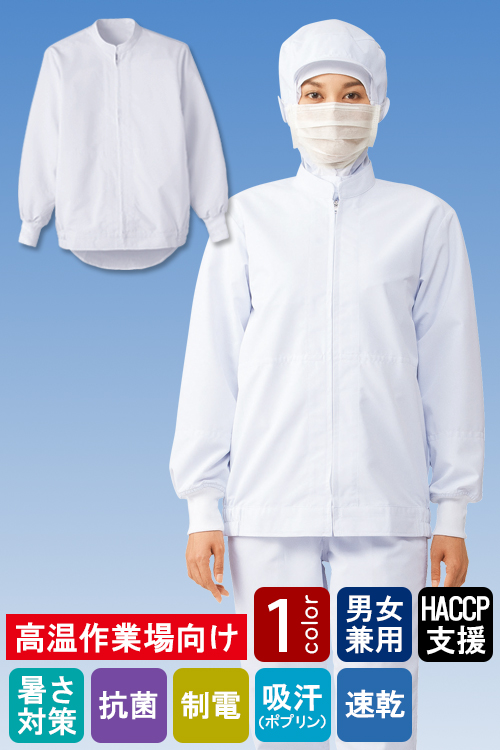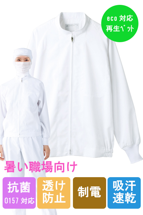 【食品工場制服衛生服】高温作業向け 涼しい長袖ジャンパー【兼用】肌離れよく、ベトつきにくい