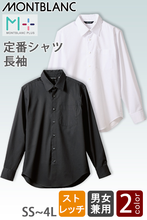 【飲食店販売店制服】ベーシック長袖シャツ【男女兼用】2色 ストレッチ あらゆる業種に対応