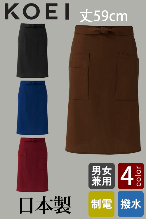 純国産☆腰下エプロン丈58cm<全6色> 撥水 制電