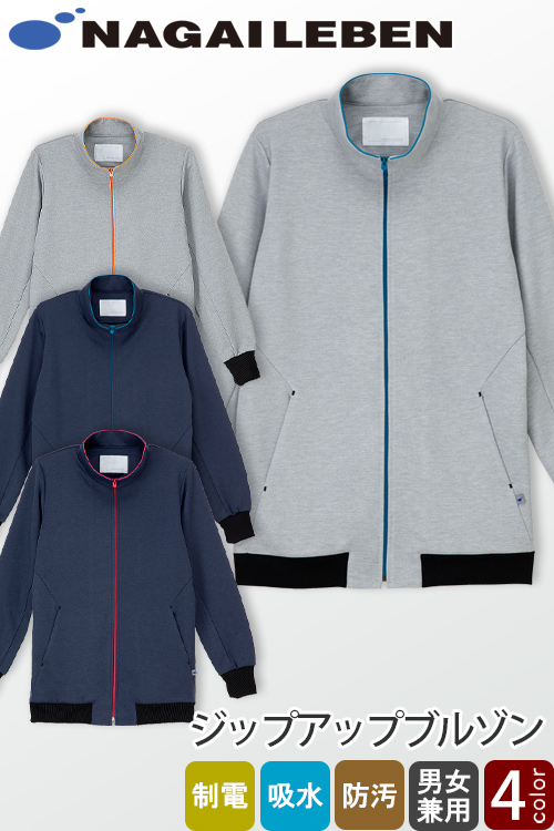 【医療・介護・清掃制服】ジップアップブルゾン【兼用】4色 カラーファスナーが元気な印象