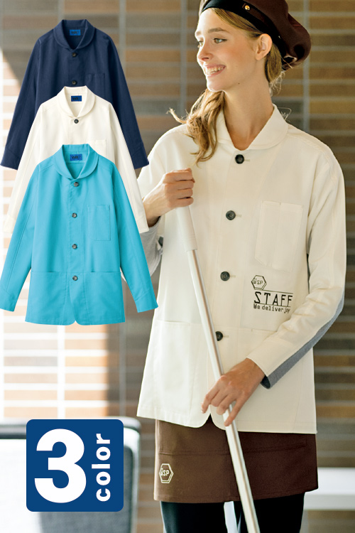 【販売終了24】長袖スモックジャケット3色 ストレッチ、消臭加工、吸汗速乾【男女兼用】