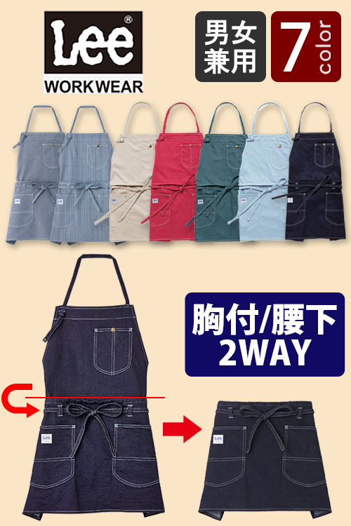 Lee workwear胸付でも腰下でも使える2WAYエプロン 7色【男女兼用】