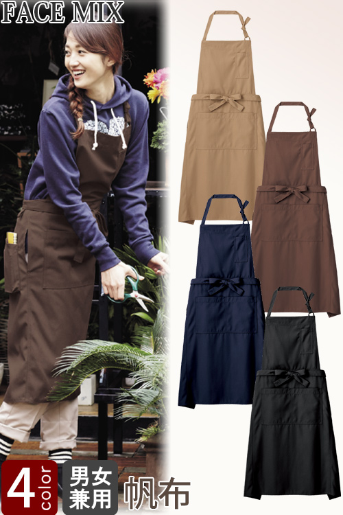 充実ポケット 胸付首かけエプロン(4色) 飲食店販売店作業用制服【男女兼用】