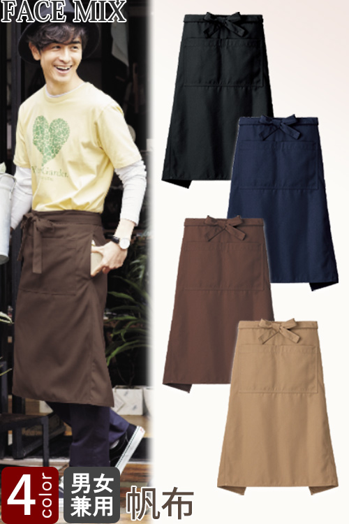 【飲食店販売店制服】前掛け【兼用】ロング丈スリット入りで動きやすい キャンバス生地のエプロン