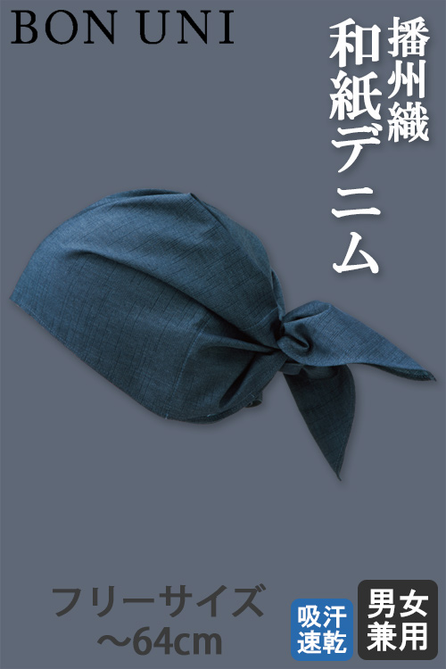 【飲食店販売店制服】伝統の播州織和紙デニム バンダナキャップ【兼用】
