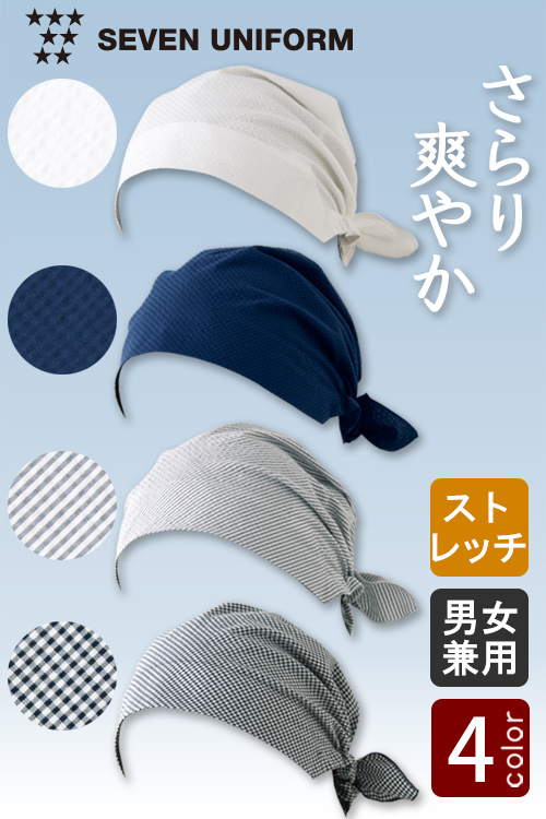 【飲食店販売店制服】夏も快適!さらり爽やか生地 バンダナキャップ(後ゴム入)【男女兼用】