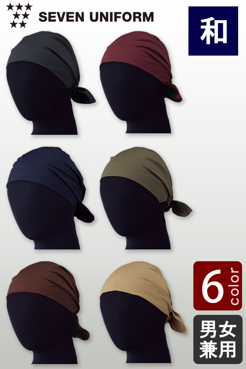 【飲食店販売店制服】落ち着いた和の色 バンダナキャップ【6色】男女兼用