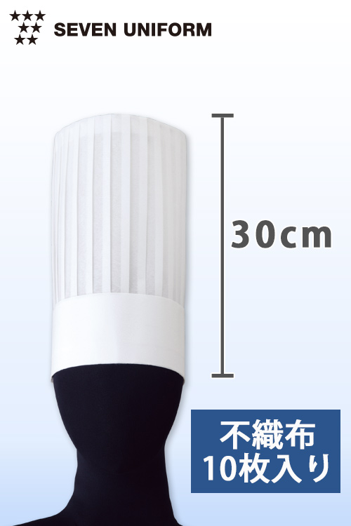 飲食店販売店制服 使い捨てができて衛生的な不織布 10枚入りコック帽30cm【男女兼用】