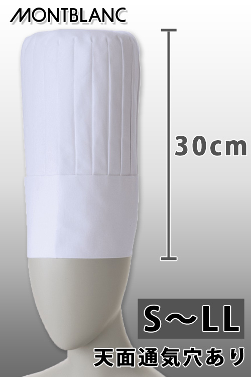 飲食店販売店制服 綿100% S〜LLサイズ 天面通気穴あり コック帽30cm【男女兼用】