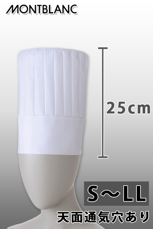 飲食店販売店制服 綿100% S〜LLサイズ 天面通気穴あり コック帽25cm【男女兼用】