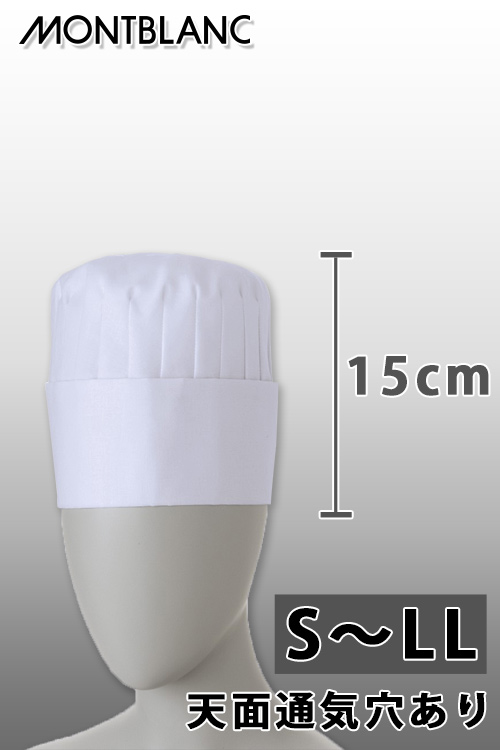 飲食店販売店制服 綿100% S〜LLサイズ 天面通気穴あり コック帽15cm【男女兼用】