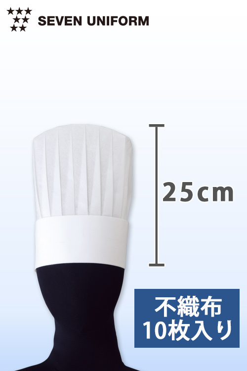 飲食店販売店制服 使い捨てができて衛生的な不織布 10枚入りコック帽25cm【男女兼用】