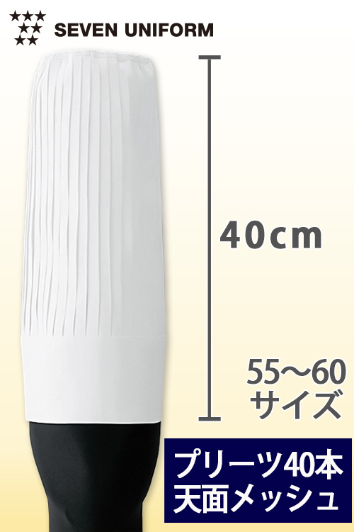 飲食店販売店制服 40本のプリーツが美しい 天面メッシュ付 コック帽40cm【男女兼用】
