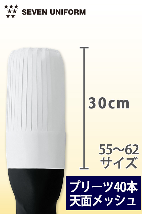 飲食店販売店制服 40本のプリーツが美しい 天面メッシュ付 コック帽30cm【男女兼用】