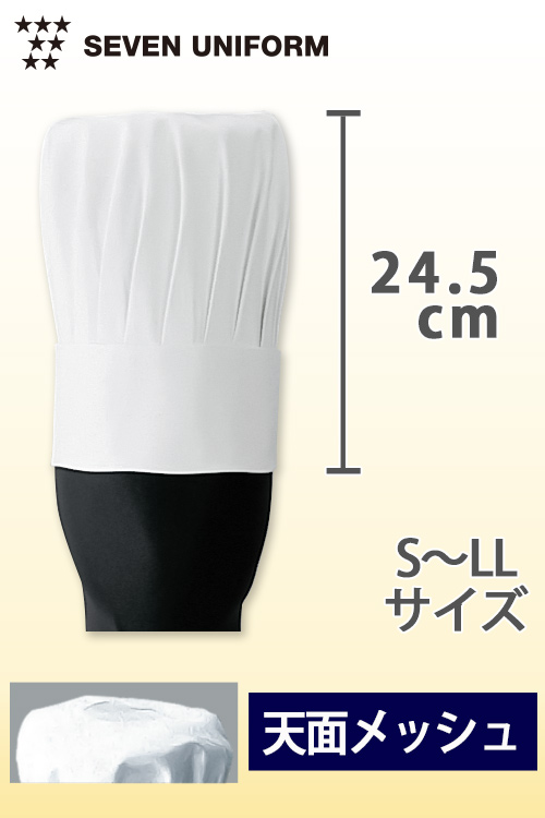 飲食店販売店制服 天面メッシュ付 S~LL 標準高さのコック帽【男女兼用】