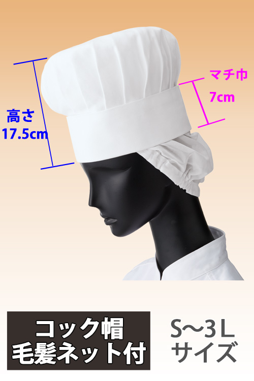 飲食店食品製造制服 コック帽子(毛髪頭髪落下防止ネット付き)HACCP支援アイテム