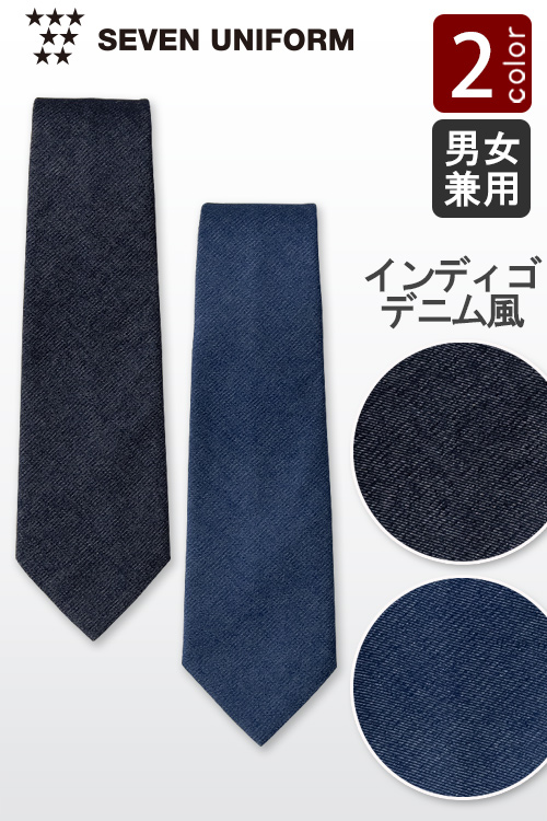 【飲食店販売店制服】斬新でお洒落 デニム風綾織ネクタイ【2色】
