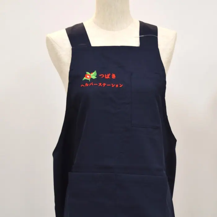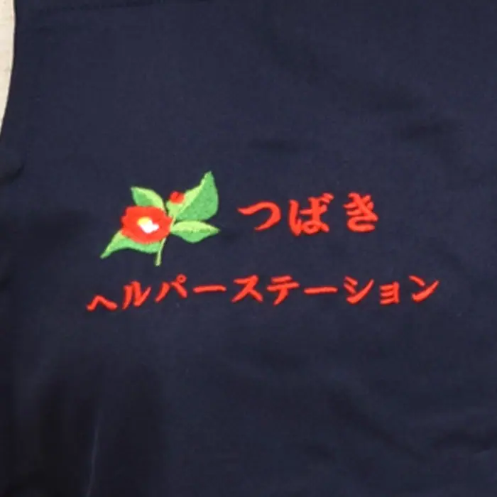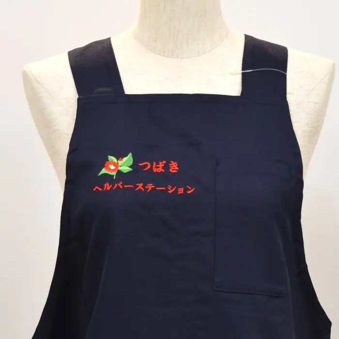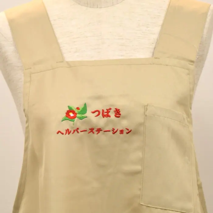 こちらの刺繍はロゴ刺繍で糸色を5色使っております。 色の違う2種類のエプロンに刺繍すると、同じ色、同じデザインでも印象が変わりますね! 今回の刺繍ではありませんが、ロゴの色がエプロンの色と同じで目立たなくなってしまう、そんな場合はご相談頂ければ、エプロンによって糸色を替えることもできます! そういった場合はぜひご相談ください!